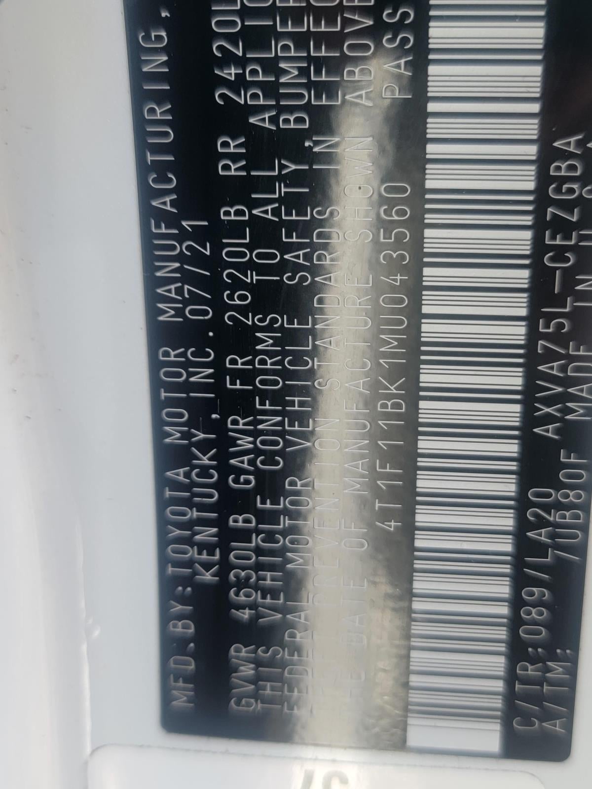 - Vehicle Name: Toyota Camry