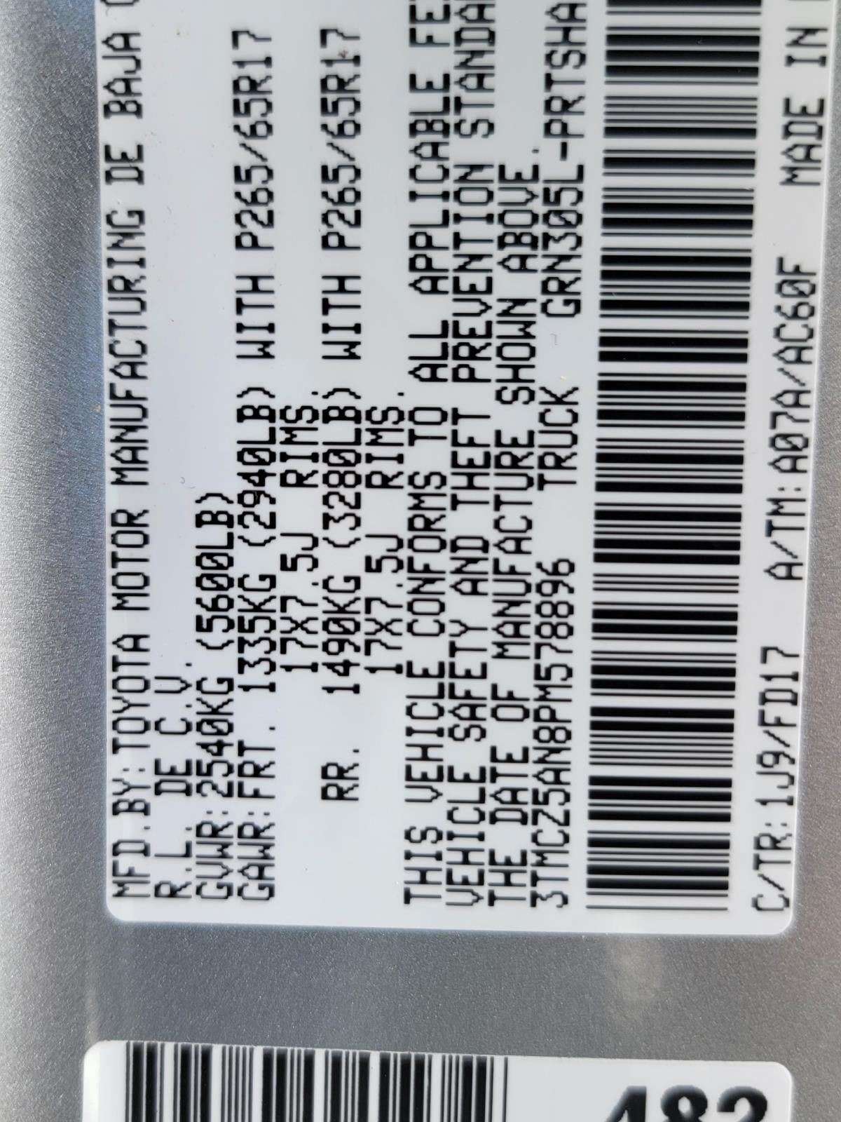 - Rear Tire Size: P265/65SR17